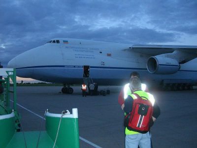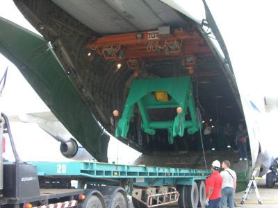 Thailand underwater excavator using full air charter using an Antonov 124. Loading at East Midlands Airport....