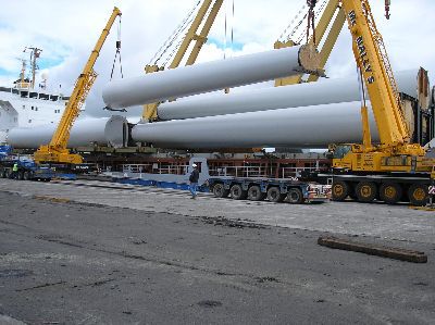 Windmills to Hadyard Hill Scotland. Full veesel charter and delivery using clamp trailer system